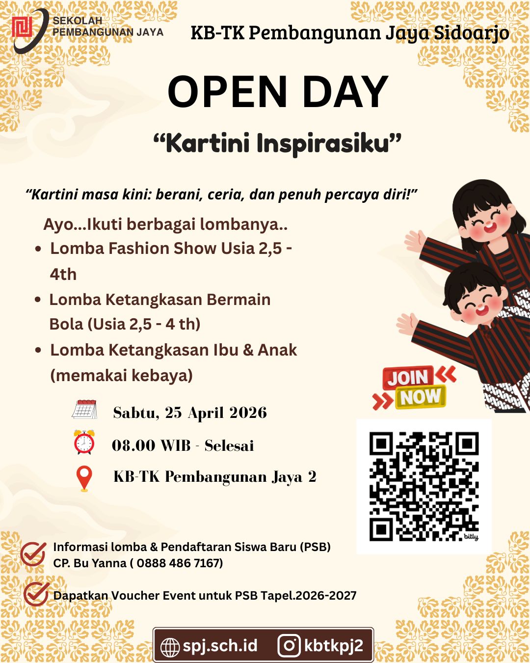 Dari lomba fashion show hingga unjuk bakat, semuanya jadi momen berharga untuk belajar dan bergembira bersama. Ayo ikuti lombanya dengan mengisi link pendaftaran: https://bit.ly/OPENDAYKARTINI